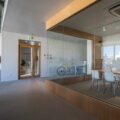 視認性の良いミーティングルームは衣装性を持たせるためにガラスの嵌め込みなど工夫した設計になっています。